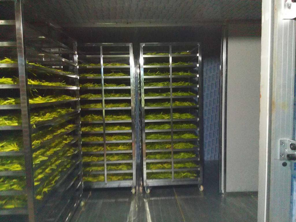 將擺放好黃花菜的物料車推入烘干房內(nèi),設(shè)定好烘干時段,溫度,排濕量,啟動設(shè)備進行烘干。
